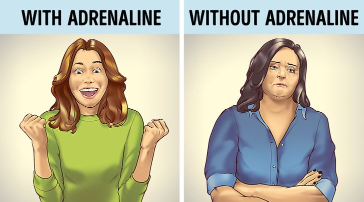 Η αδρεναλίνη (επινεφρίνη) ενισχύει τις μεταβολικές διαδικασίες και καίει το λίπος. Η επινεφρίνη αφορά τα πιο λαμπερά συναισθήματα που αισθάνεσαι σε ορισμένες (μερικές φορές ακραίες) καταστάσεις. Εάν δεν έχεις αισθανθεί αυτή τη βιασύνη στη ζωή σου εδώ και πολύ καιρό, ίσως είναι καιρός για αλλαγή – ή και ώρα να χάσεις βάρος επίσης. Πρέπει να θυμάσαι ότι η αδρεναλίνη δεν θα αλλάξει τίποτα στο σώμα σου, εκτός εάν αλλάξεις την διατροφή σου.