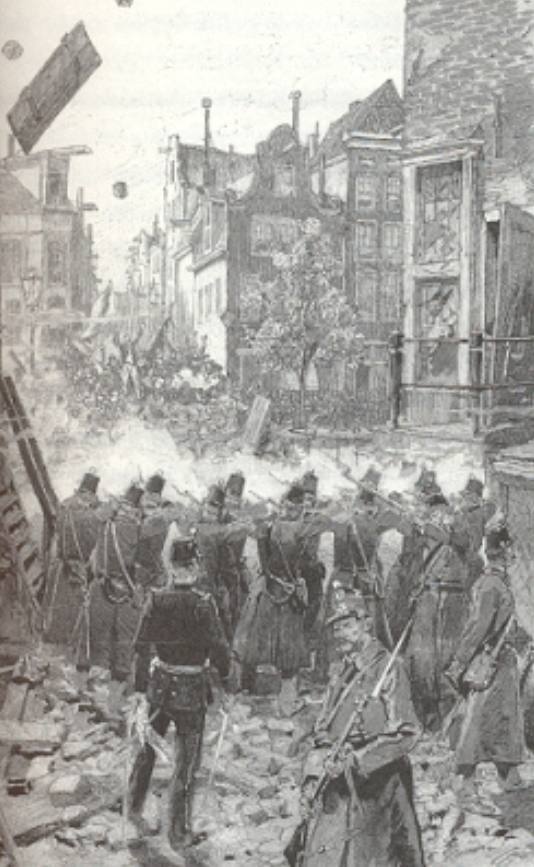 Ο στρατός πυροβόλησε το πλήθος, τυλίγοντας ολόκληρη τη σκηνή με καπνό, καθώς δεν είχε ακόμη εφευρεθεί σκόνη καπνού χωρίς όπλο, και καθώς ο καπνός εξαλείφθηκε, 26 διαμαρτυρόμενοι νεκροί στους δρόμους, ενώ οι υπόλοιποι έφυγαν πίσω στα σπίτια τους.